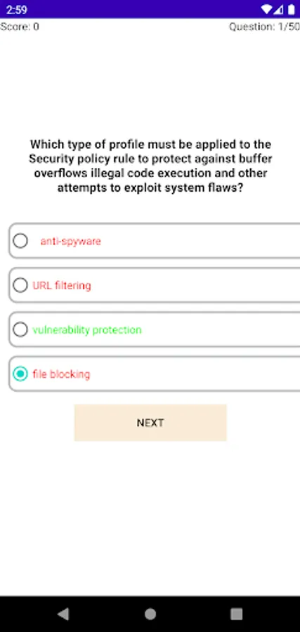 PCNSA Exam Practice Question is an independent study tool developed to aid individuals in their preparation for the Palo Alto Networks Certified Network Security Administrator (PCNSA) certification exam. This app is not affiliated with, endorsed by, or connected to Palo Alto Networks or any third-party organization. The content and practice materials provided in this app are for educational and self-study purposes only. Users are encouraged to refer to official documentation and resources for the most accurate and up-to-date information related to the PCNSA certification. The developers of this app do not guarantee success on the PCNSA exam, as the actual exam outcome depends on the individual's effort, knowledge, and readiness.