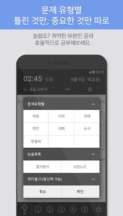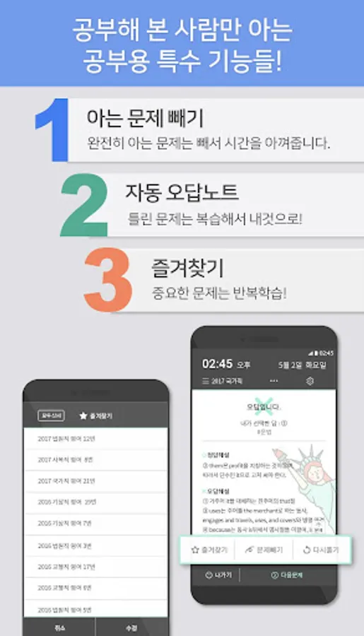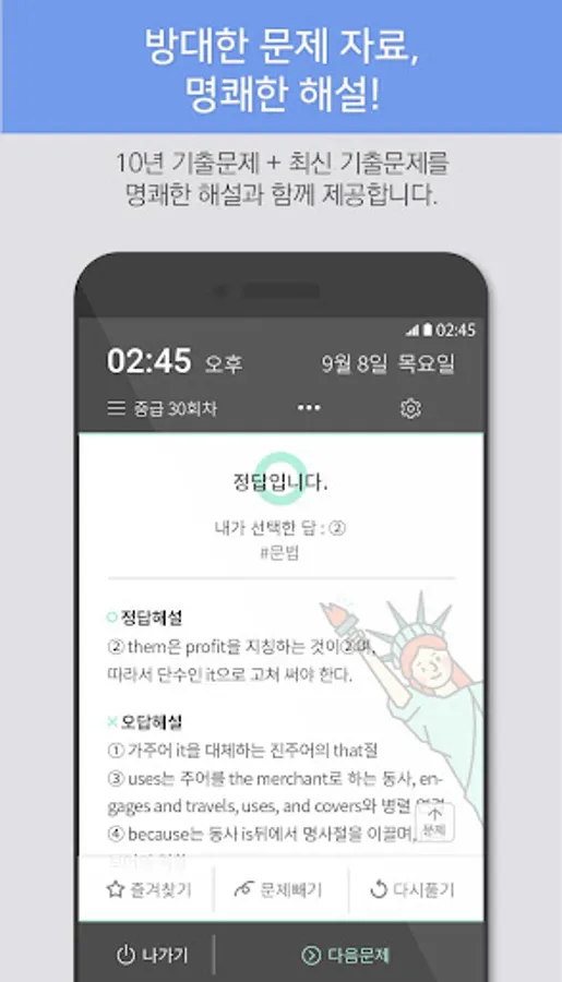 You can see the previous English questions automatically just by turning on the phone. If solving a problem is cumbersome, read it through and feel free to make any mistakes. It is a great help if you read the clear explanation and read it only once.