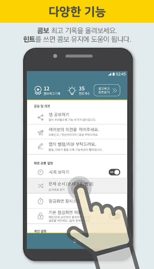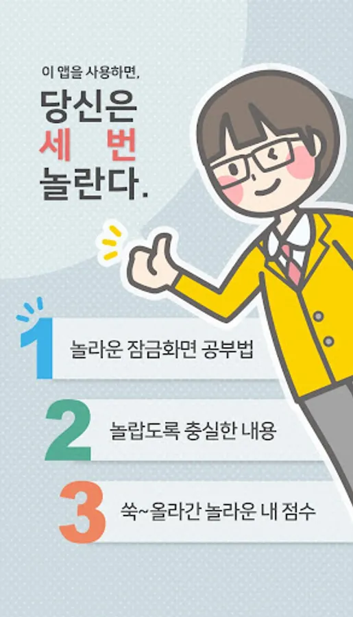 카톡확인에, 인스타, 페북 확인, 심지어 무의식적으로 한번 쓰윽 폰을 열어보지만, 폰을 열 때마다 문제하나씩 톡톡 보여지면 알게모르게 공부가 정말 많이 되겠죠?