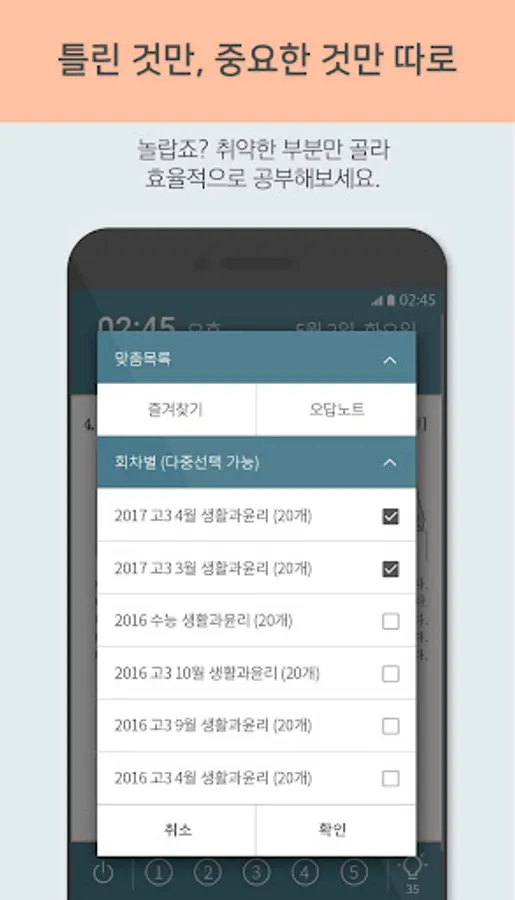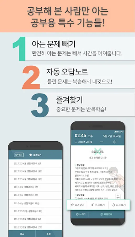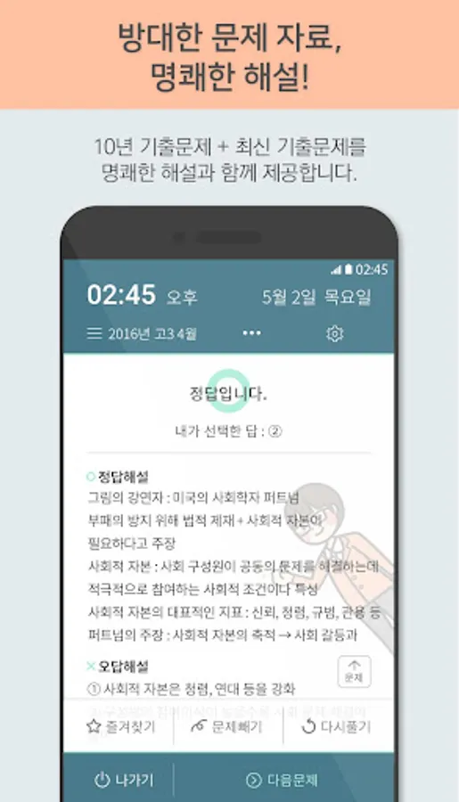 We provide dozens of previous questions in the Life and Ethics SAT exam and major mock exams, including correct answers and incorrect answers, without omission. And the exams to be conducted in the future are updated immediately, so this one app is enough to conquer previous questions.
