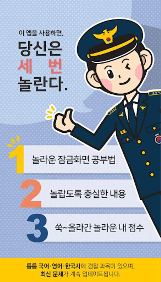 지금까지 볼 수 없었던 정말 제대로된 경찰공무원 공부앱이니 일단 믿고 받아보세요!