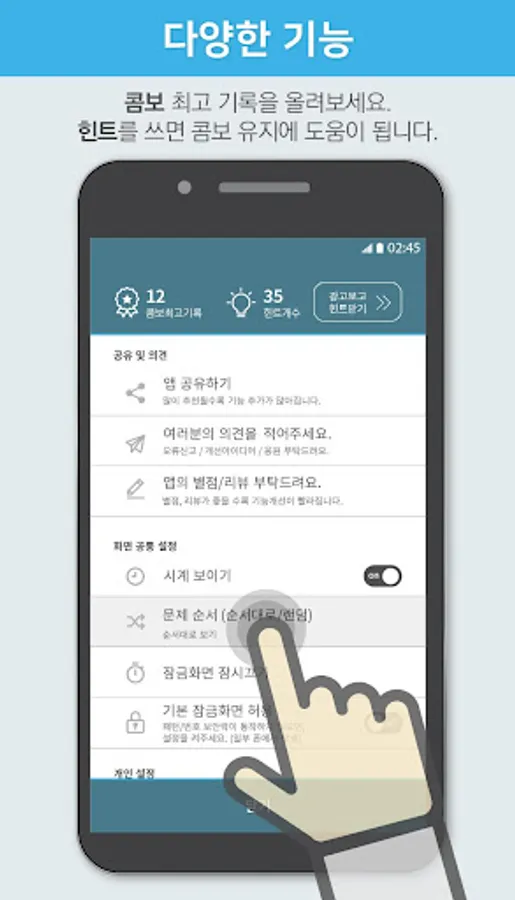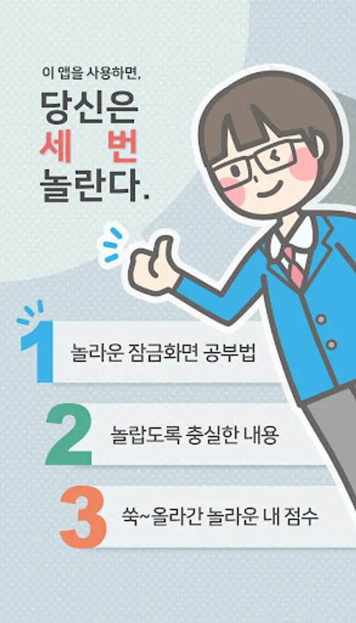 카톡확인에, 인스타, 페북 확인, 심지어 무의식적으로 한번 쓰윽 폰을 열어보지만, 폰을 열 때마다 문제하나씩 톡톡 보여지면 알게모르게 공부가 정말 많이 되겠죠?