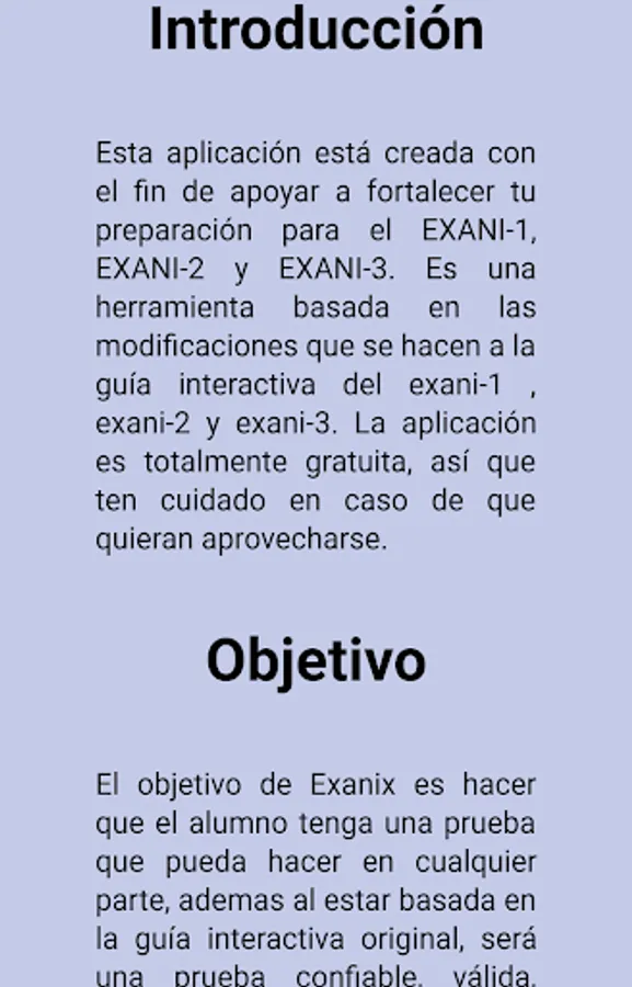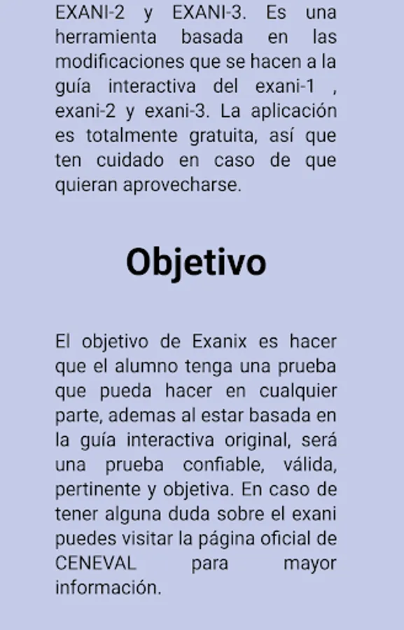 Enough of looking for questions and study other, with Exanix you can study so real that when it comes to your Ceneval, will be a cinch. Right now we are only EXANI-1 if you want EXANI-2 and 3 we ask out a message to our email accounts