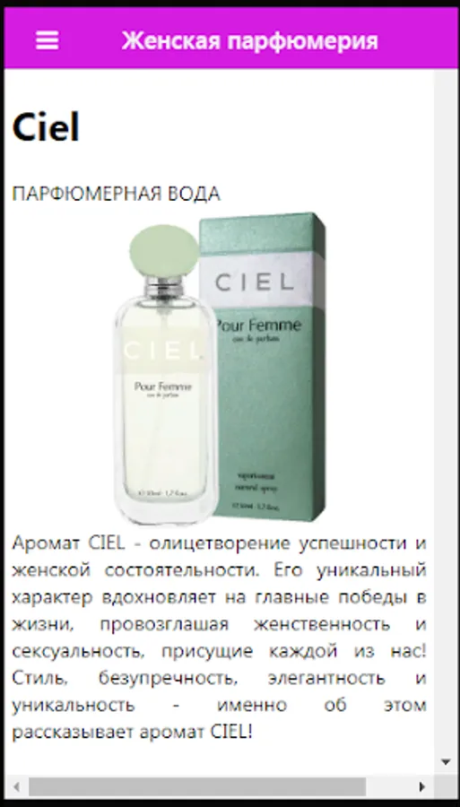 CIEL is an international business project, a well-known and reliable beauty company, with its own production and research center in Russia. Leading expert in perfumery in the direct sales segment. The best experts from around the world collaborate with the brand and help create products of the highest level and impeccable quality. We will be very glad if this application is useful and convenient for you.