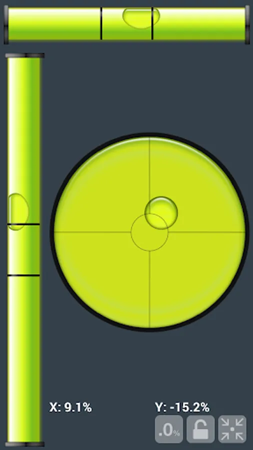 - regular spirit level (bubble level, libella) - works like a traditional bubble level tool, place your smartphone or tablet, on the surface or on the object to be measured or set at any angle,