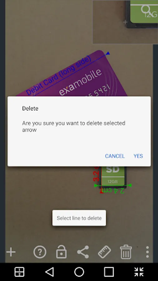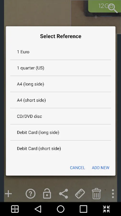 - Take a photo (or select from the gallery) measured object and the reference object whose you know the dimensions (objects should be in the same plane)