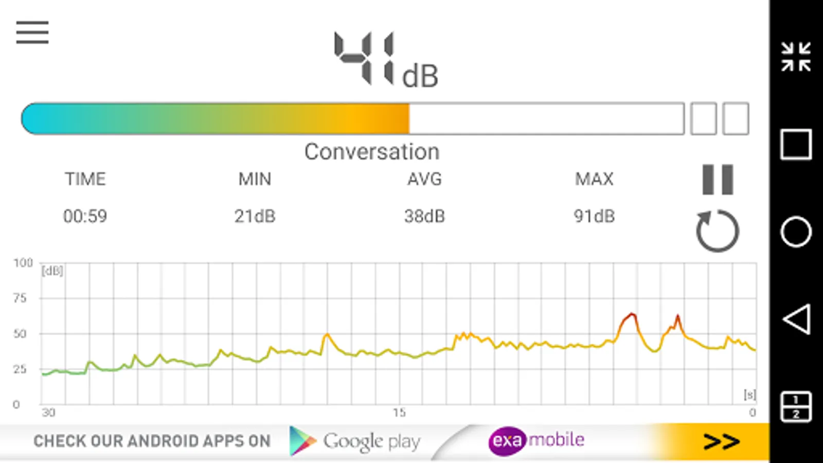 This application use the built-in microphone in your smartphone or tablet and results of measurements are shown in the chart.