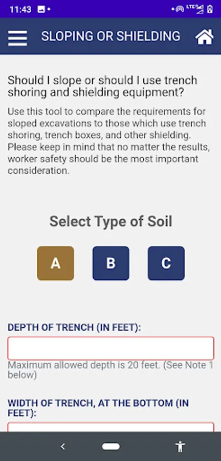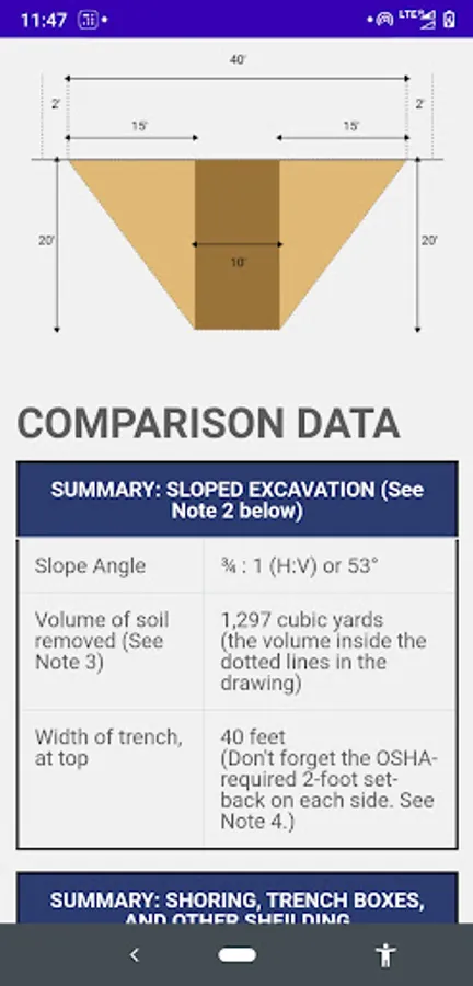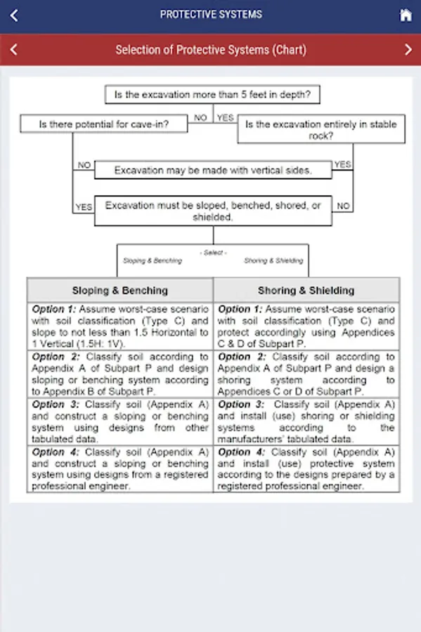 - Sloping or Shielding Tool: Compare the requirements for sloping vs. shielding (includes the volume of soil to be removed, the slope angle based on the soil type, and a sketch of the excavation for easy visualization).