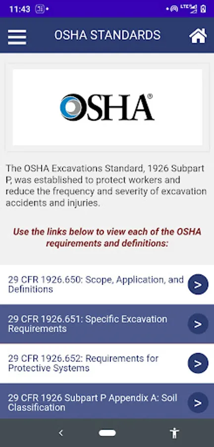 Make informed decisions about excavations and stay safe. Excavations 101 is designed to be a quick-reference tool while on the job. Measure the angle and slope of a trench by tilting your phone or measure it using the camera. Look up step-by-step instructions for soil type analyses. Read about protective systems and hazards to be aware of. Test yourself on spotting hazardous excavation conditions. Get easy access to relevant OSHA standards. Download this app make the best choices in every situation!
