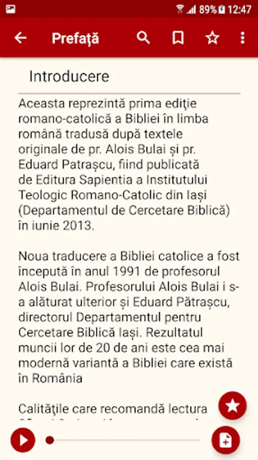 This is the first Roman Catholic edition of the Bible in Romanian translated from the original texts of pr. Father Alois Bula. Eduard Patraşcu being published by Sapientia Roman Catholic Theological Institute of Iaşi (Department of Biblical Research) in June 2013. Translation is a new, directly from the original languages and in consultation with the competent international and multi translations.