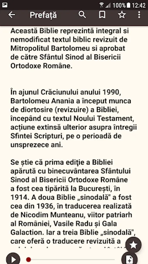 This version of the Bible represents fully and unmodified the biblical text revised by Metropolitan Bartholomew and approved by the Holy Synod of the Romanian Orthodox Church.