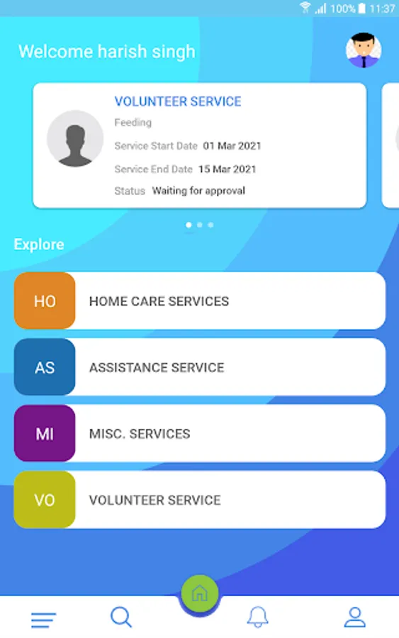 Assistance Service: The Helping hand offers Assistance service like bathing, walking, wound dressing etc., at your home.