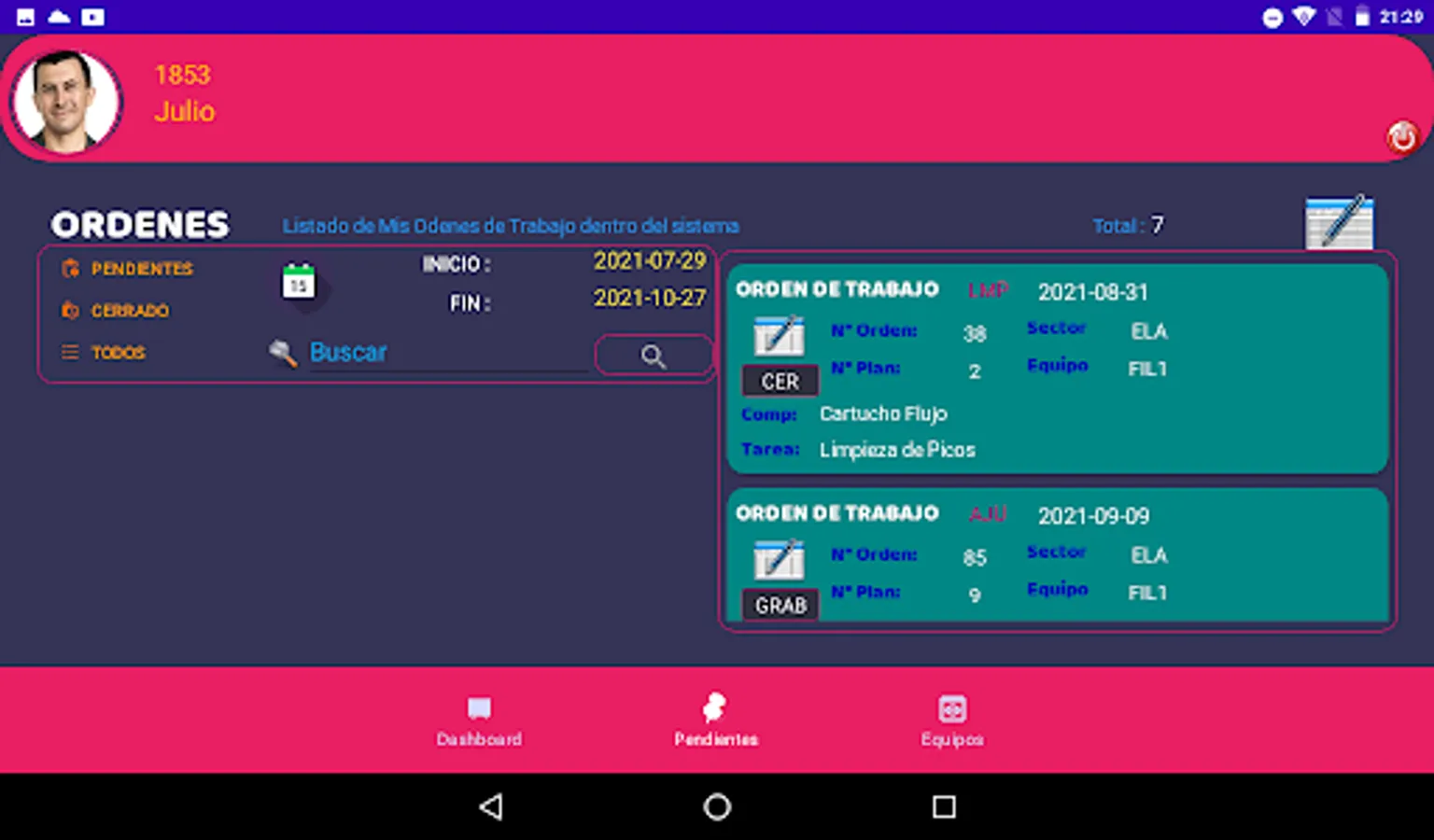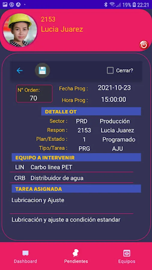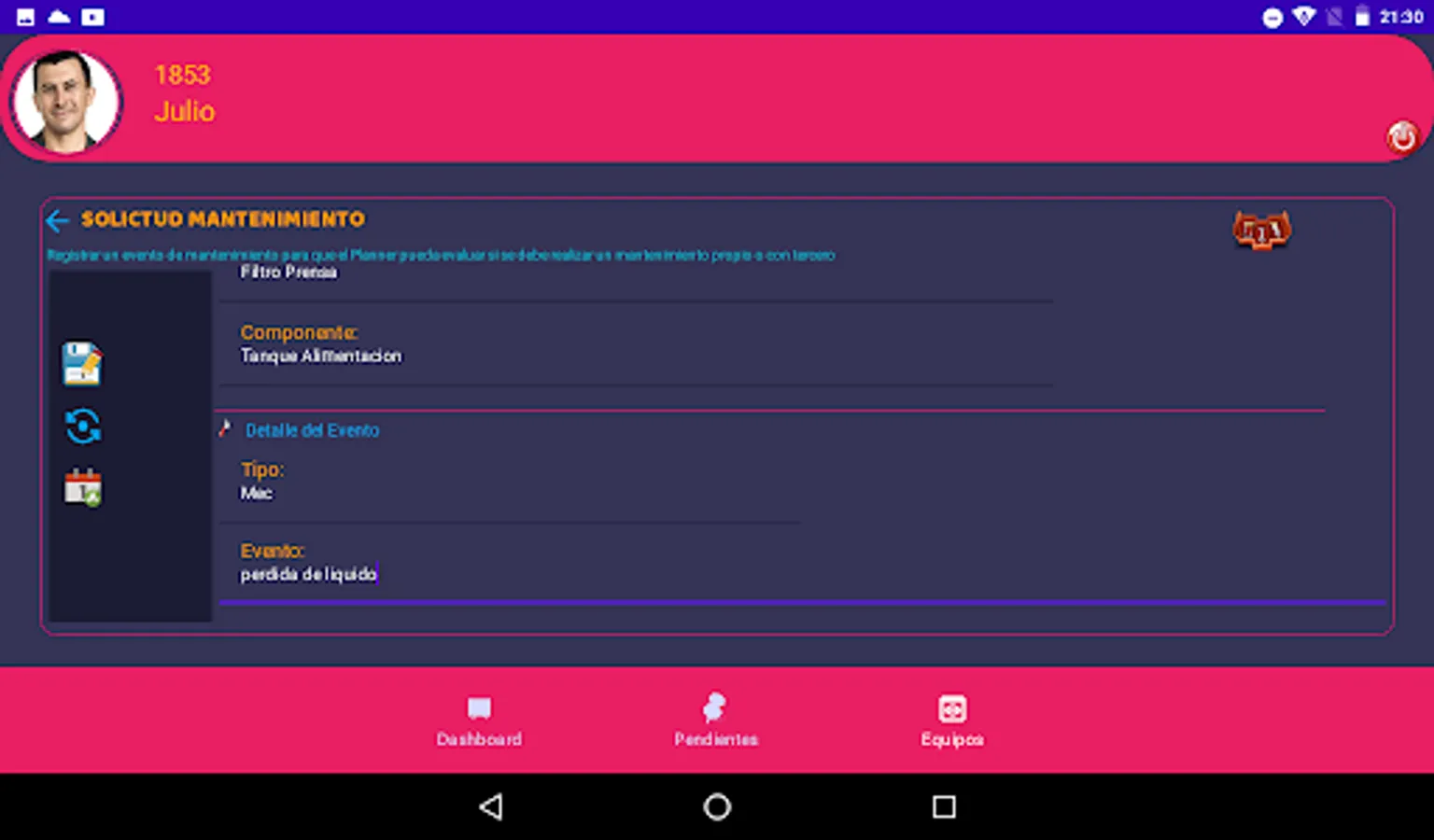 - Create and Load Maintenance Events (Noises, Faults, etc.) that are detected in the Operation, these will be seen by the Planner from the Desktop App, and will give the corresponding course