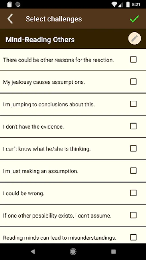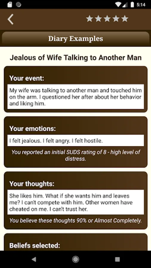 • Fully customizable: change the CBT terms (beliefs and definitions) used in the diary to conform with the system you are familiar with, add your own challenging statements for each belief, add moods/emotions, add healthy activities to track, change colors of app