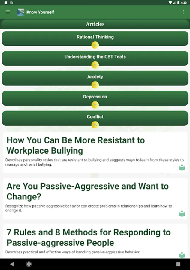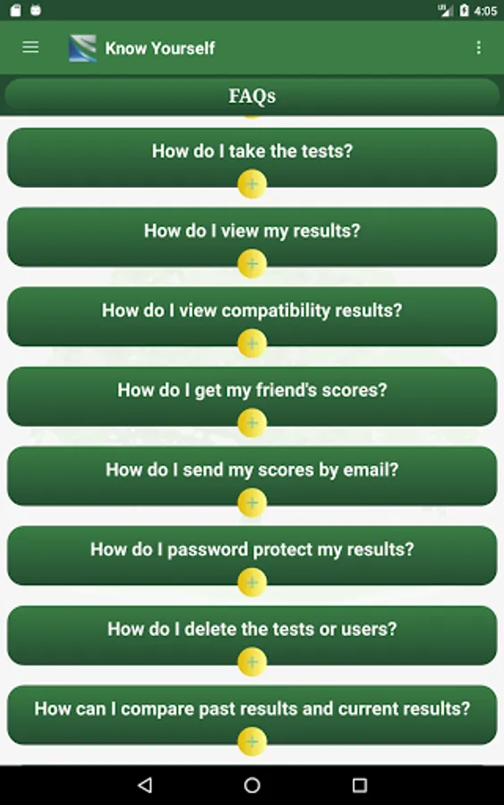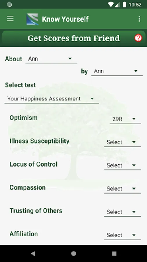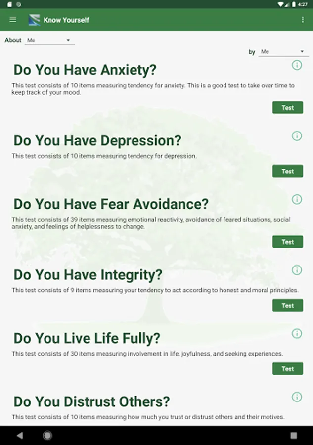 The quizzes in this app are intended as a guide to help you improve your life and your relationships - not as a substitute for professional evaluation.