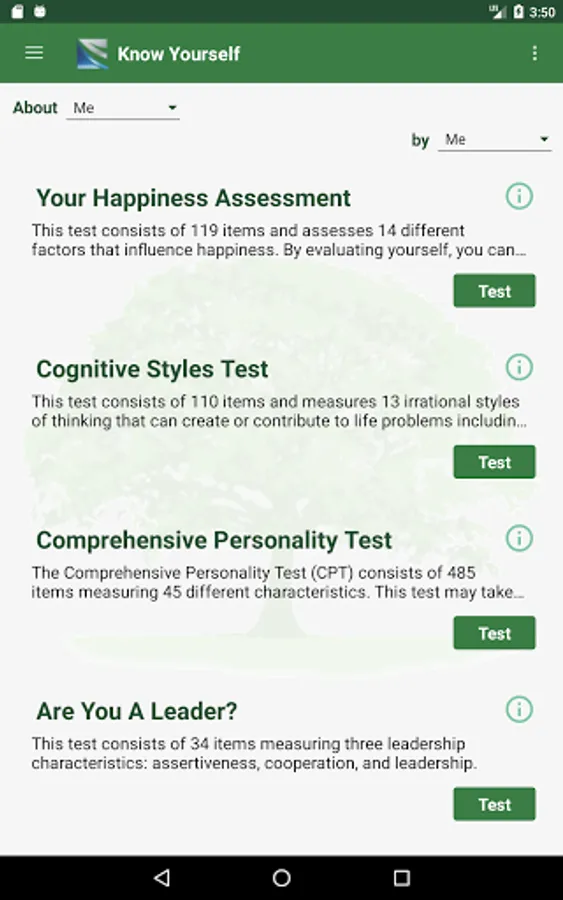 Test yourself to increase self-awareness. Receive detailed results with suggestions for improvement.