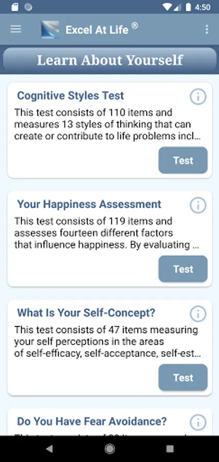 • Cognitive Styles Test, Your Happiness Assessment and more