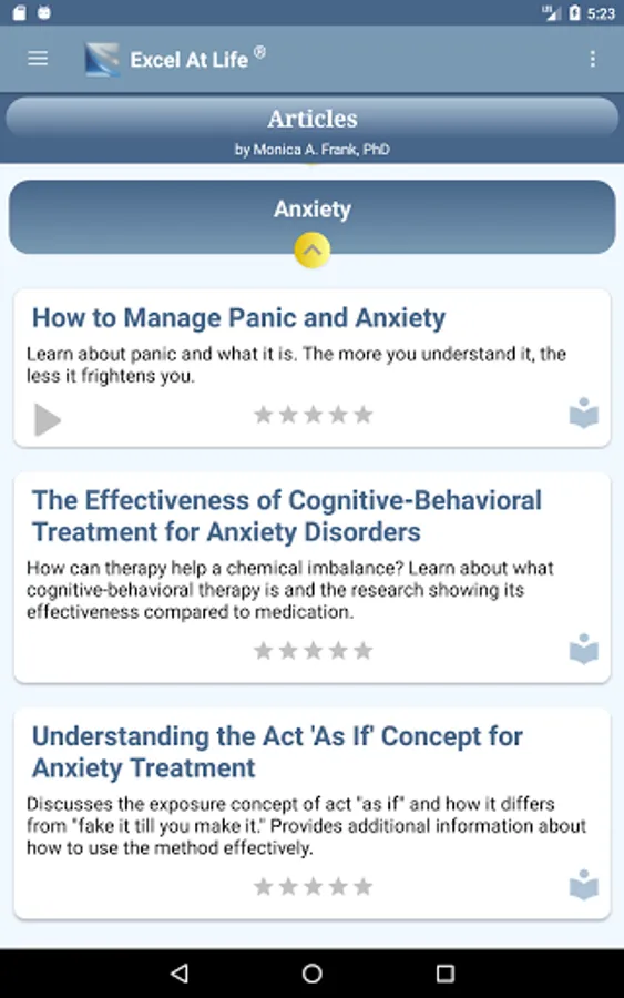 The tools provided in this app are derived from the CBT research base and developed into a user-friendly format by Dr. Monica Frank, a clinical psychologist specializing with the cognitive-behavioral treatment of anxiety disorders for over 30 years.