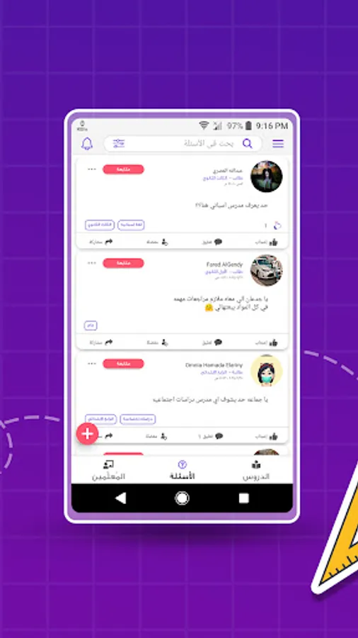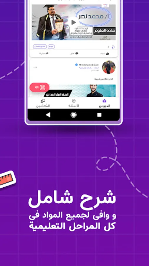 An application for students of the Arab Republic of Egypt that contains lessons and reviews of all subjects. The teachers add lessons and videos for each subject, and the student can add a question in a subject and respond to it through the teacher who specializes in the subject.