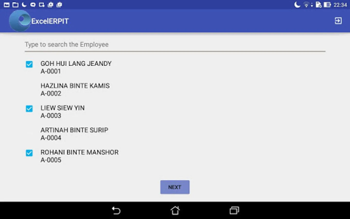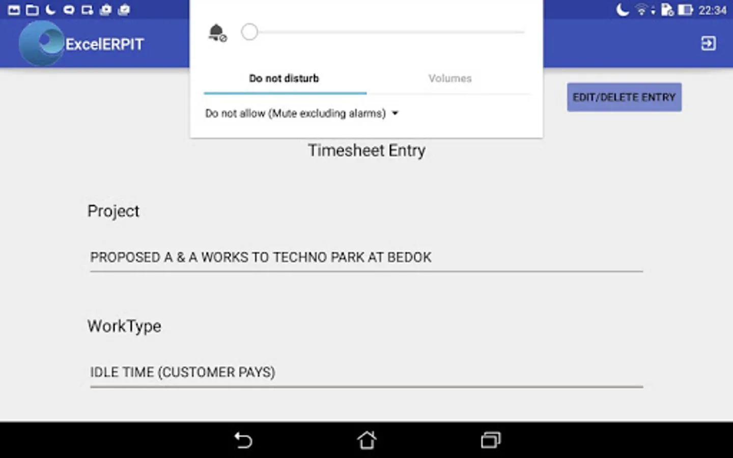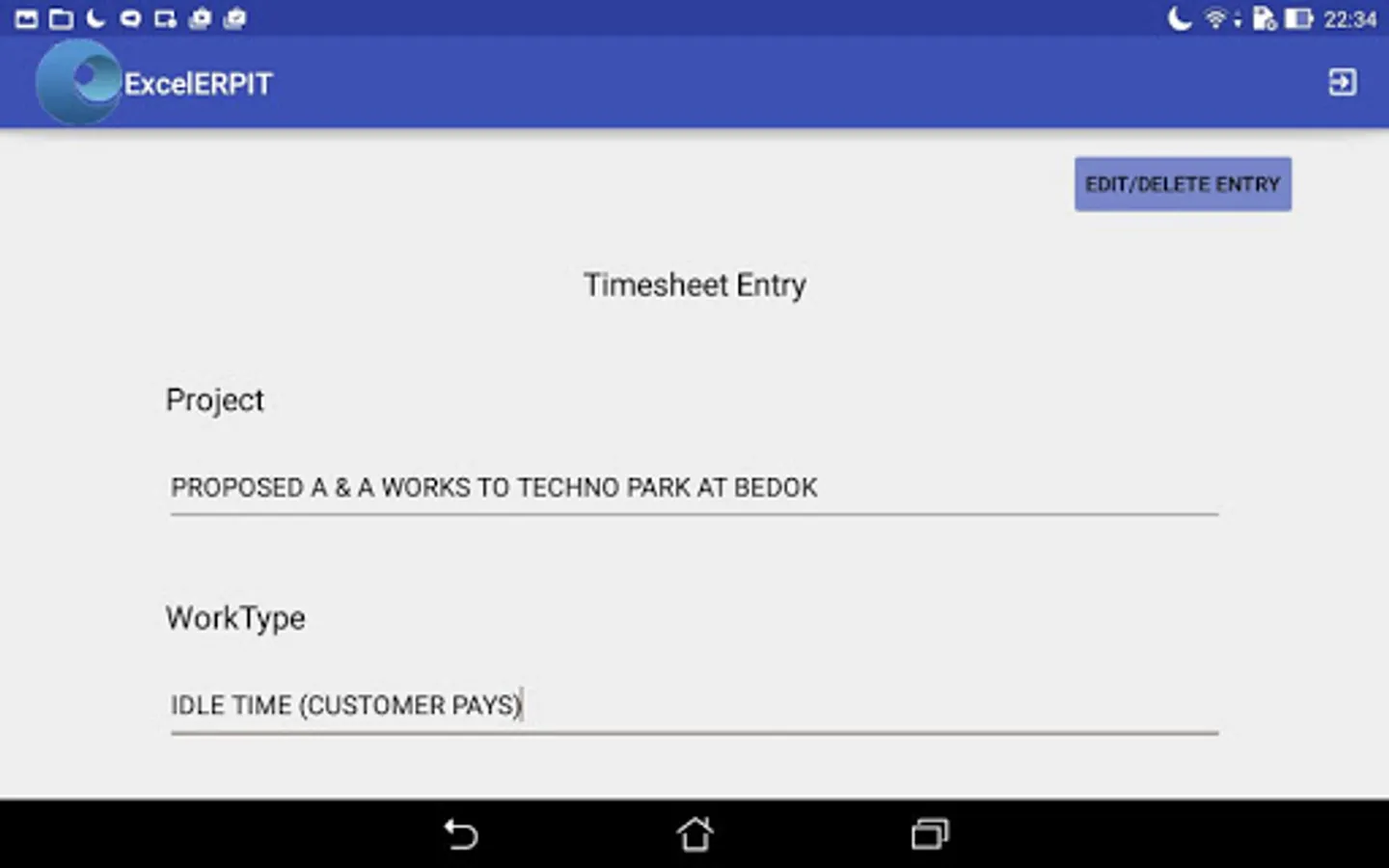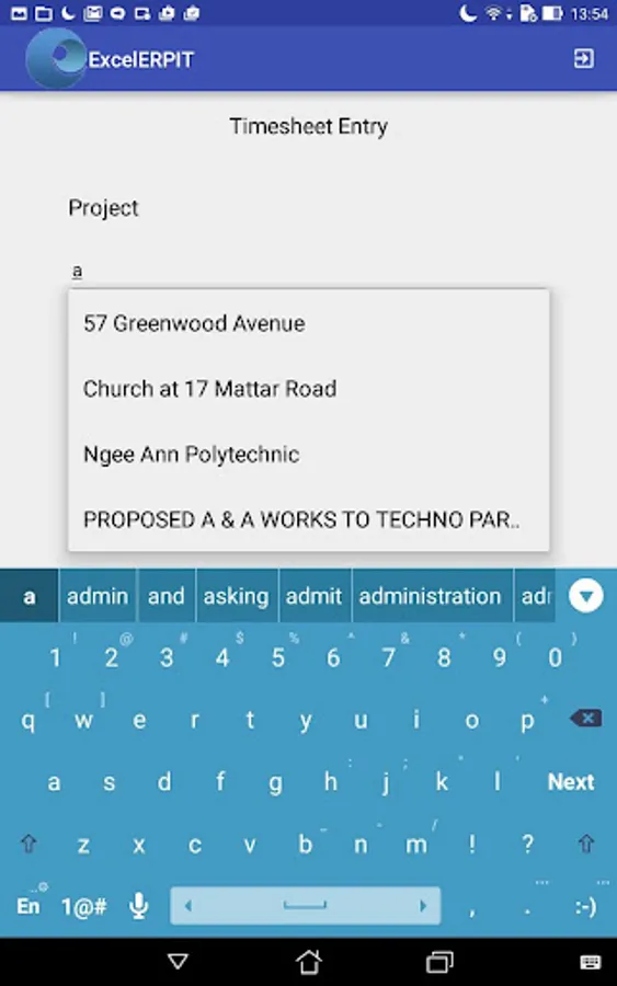 ExcelForte ERP Application - HR Time Sheet entry