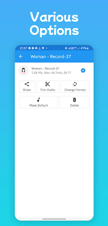 With our all-in-one sound changer pro app, trim your voice clip, add background voice, or custom edit your voice clip. Edit with video sound effect tools such as custom speed, volume, pitch, high pass, low pass, echo, flange, and distortion. With our voice effect app, you can also normalize the voice using the SFX reverb, chorus, three EQ, and much more our voice effect app. Use the automatic setting feature or change the effects according to your likeliness. Next, import your saved settings quickly using different format converter options. Share the funny voice effects with your friends and family.