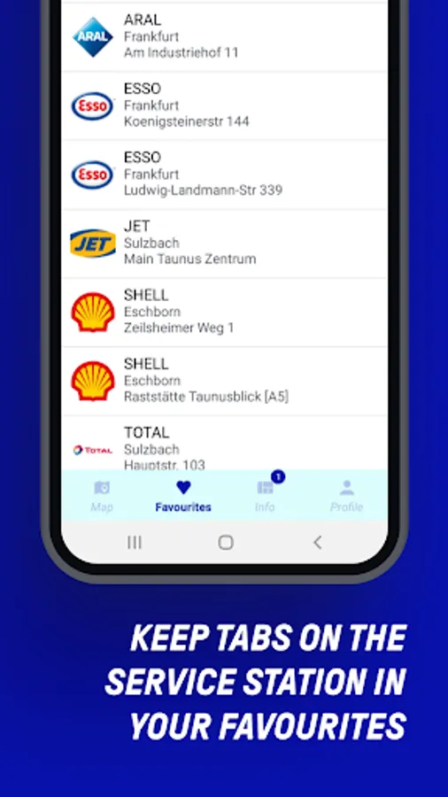 • Prices of the available fuel types – only if applicable in the individual European countries; in Germany, prices are obtained from the Market Transparency Unit for Fuels (MTU Fuels)