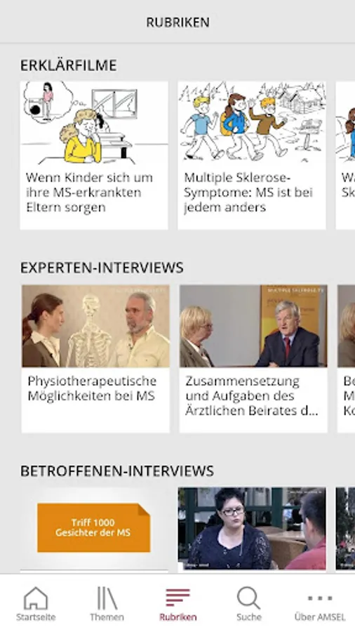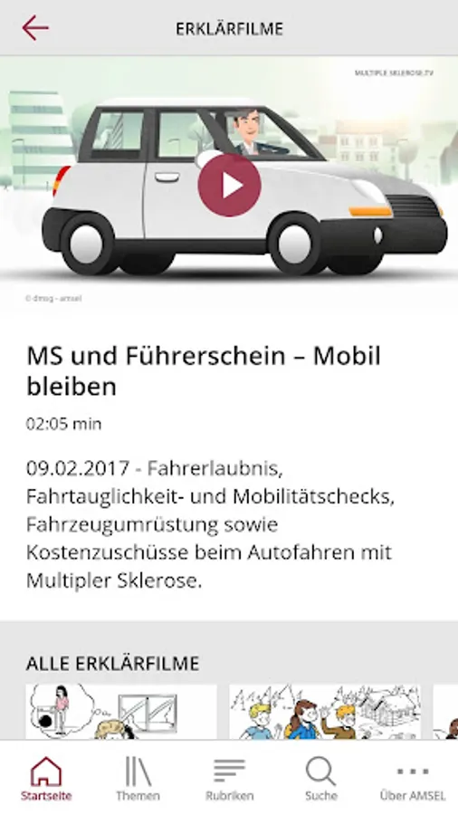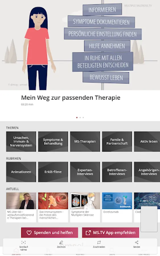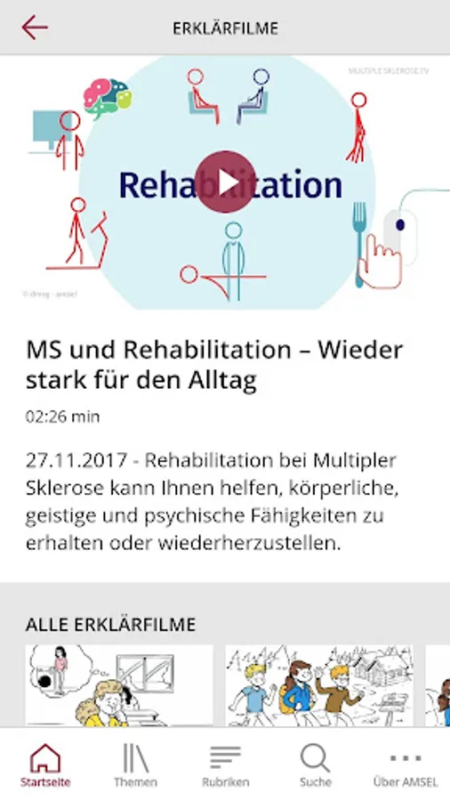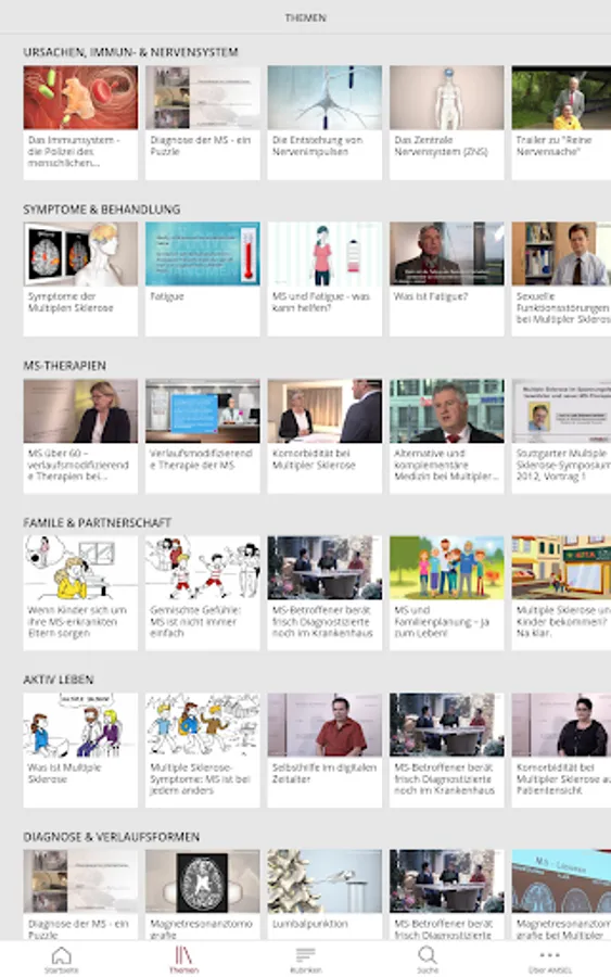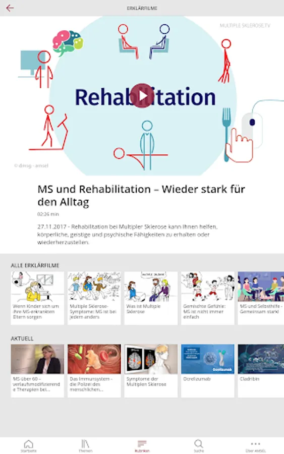 The app "MS.TV" offers expert and patient videos as well as animations about multiple sclerosis (MS). Inform yourself comprehensively about the life with MS, diagnosis, research, therapy, symptoms, experiences of affected and relatives and many more topics. Are you interested in the topic "alternative and complementary medicine in MS" or would you like to know something about "fitness training and MS"? Is "pain in MS" an issue for you or how is it related to "toddler and MS"? Answers and suggestions can be found in the videos of well-known experts, MS patients or their relatives. Other topics: