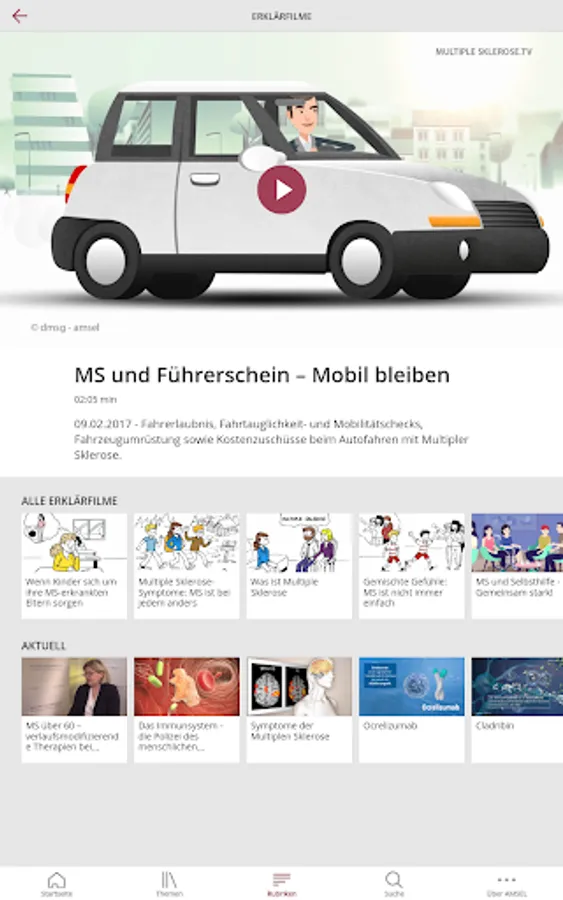 • Animations on the topics: therapy of MS, diagnosis of MS, causes of MS, immune system and the central nervous system