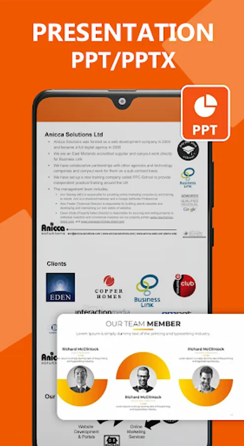 No need to open the computer, only with your mobile, you can manage all files and read all documents in PDF, PPT, XLS, TXT or WORD file format.