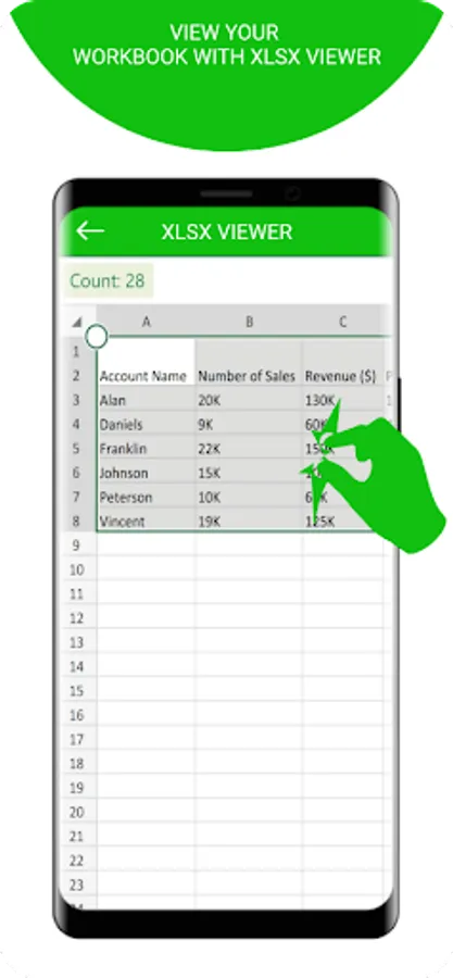 "Xlsx File Reader with Xls Viewer" Xlsx file reader will help to view and read your xlsx file quickly and easily. With Xlsx file viewer you can manage your chart, data analyses & work sheets. Xlsx file reader can be your default file viewer app you you can directly open the xls file from the file manager, email container or web in this spreadsheet reader without opening the application.