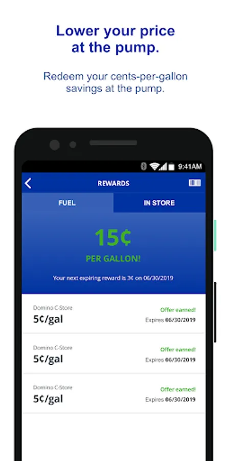FIND DEALS. Scroll through the app to view all available offers. Plus, Domino Rewards members save 5¢/gal for every $25 spent in-store*.