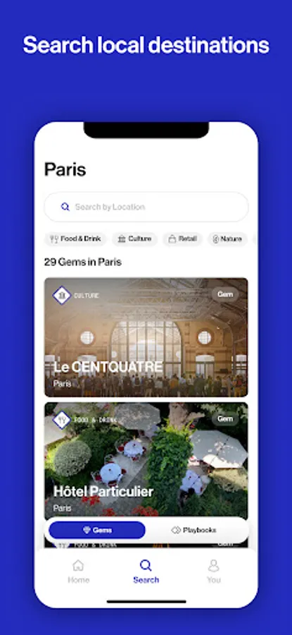 • Search Gems across Food & Drink, Arts & Culture, Events, Nature, Retail, Accommodation, Wellness, and more
