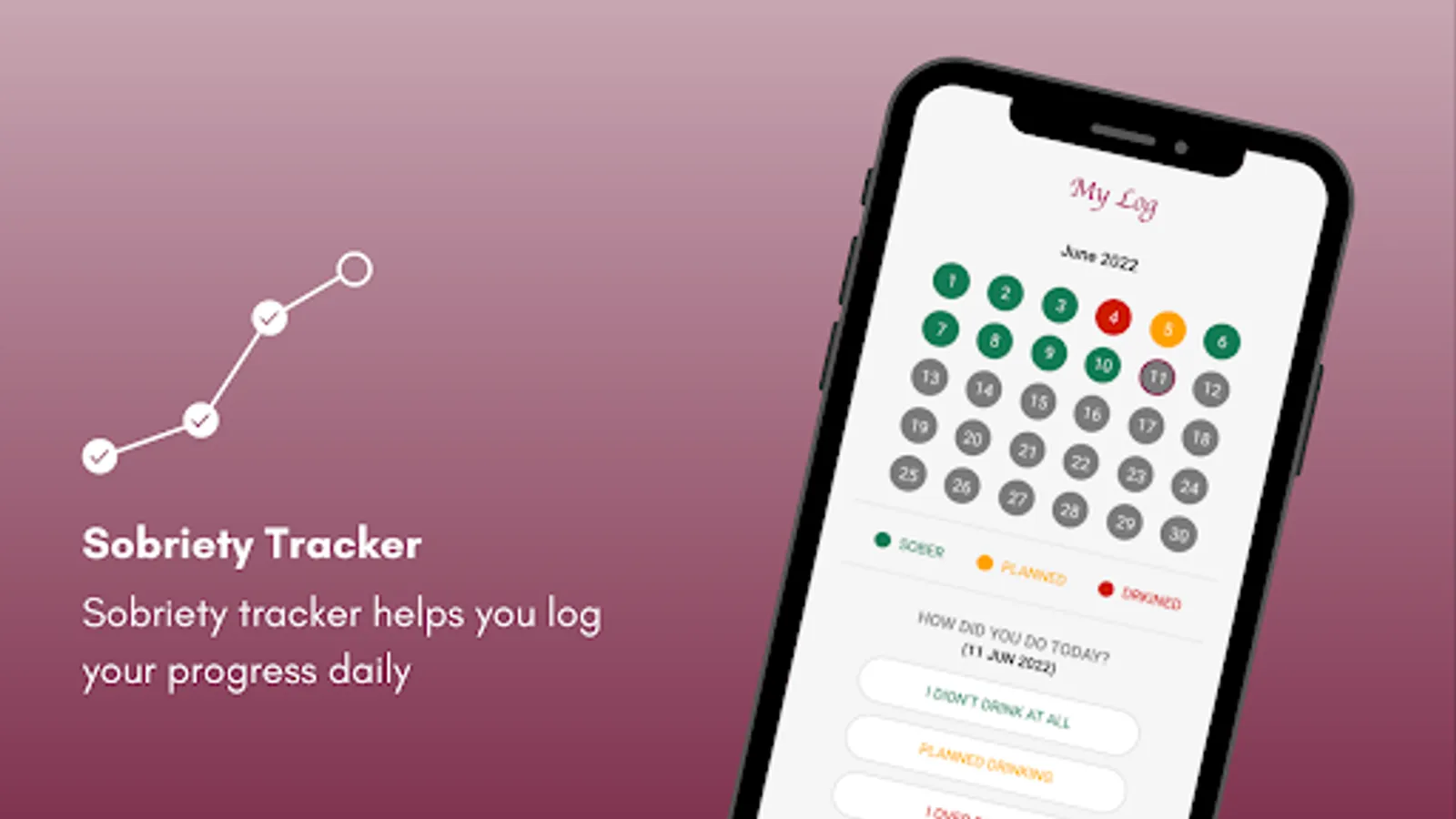 2. A highly functional Log that helps you maintain your streak of being sober and tracking your sober days.