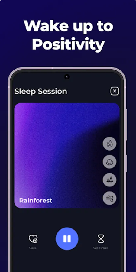 We are also providing you with a sleep timer so you can set it to turn off after you've fallen asleep. And if you wake up in the middle of the night, the app will gently fade out the sound so you can drift back to the dream world and sleep better.