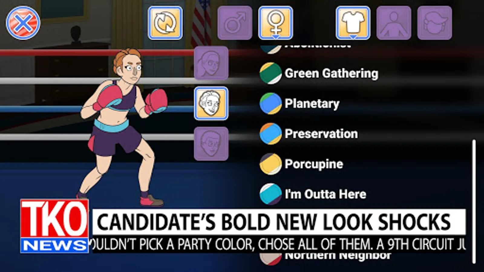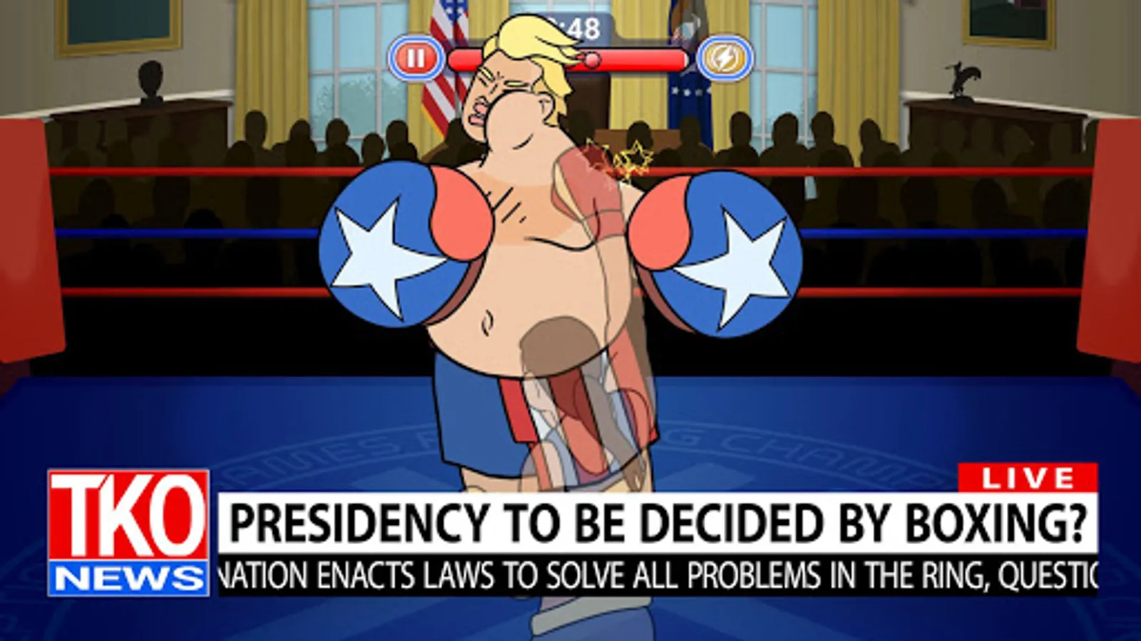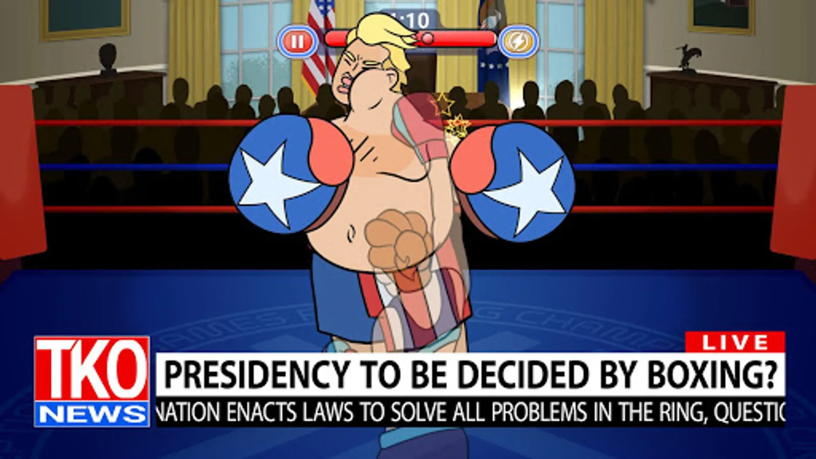 Create your own political party, lace up your boxing gloves, and punch out your way to the White House in Election Year Knockout! In a country torn apart by its political divide, the nation has resorted to boxing to settle its differences. Fight your way through hilarious political opponents before squaring off with president Donald Thump himself!