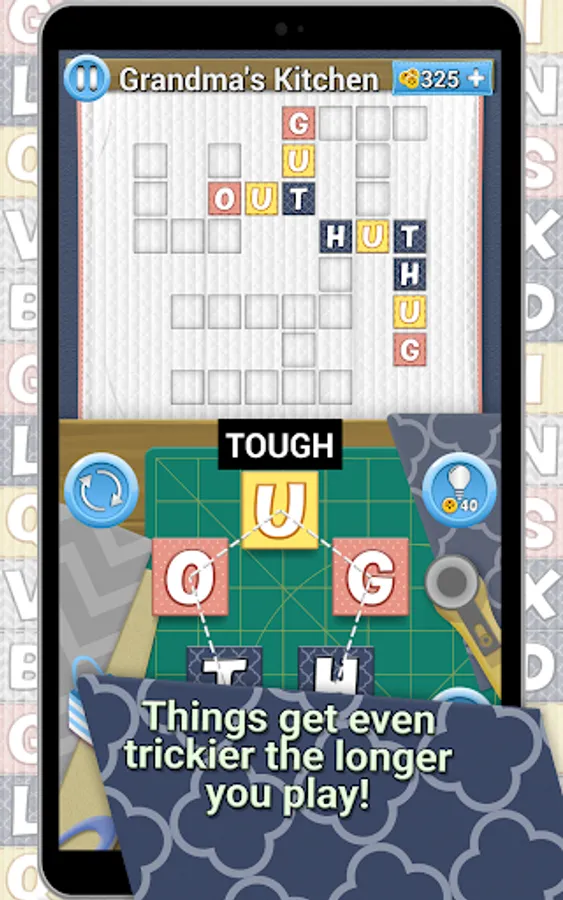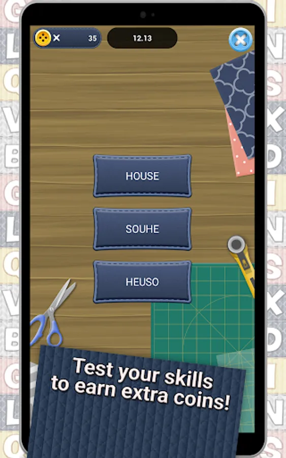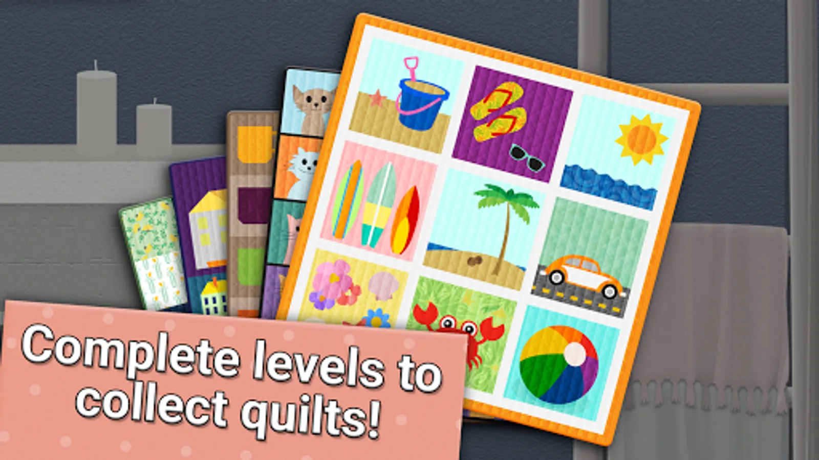 Get started on a sewing celebration! Find words and beat levels to create beautiful and charming quilts! Have fun challenging your brain to complete hundreds of tailored levels that get much harder with every new quilt. Reward yourself by playing a fact action minigame for a huge coin boost!