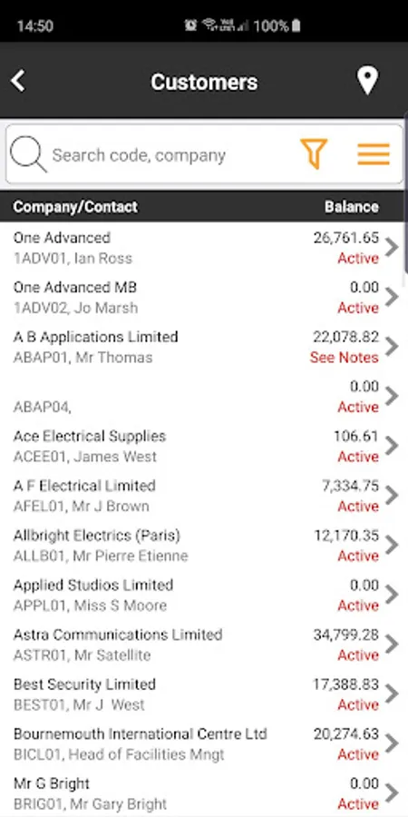 Find yourself on site with a customer and have an account query; no problem simply bring up their account information and view/e-mail a statement or copy invoice; right from your device. With support for full wild-card searching throughout, you will be able to locate and solve your query in a matter of seconds.