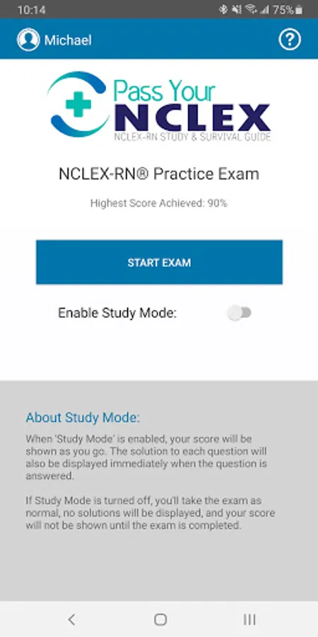 - Optional "Study Mode", where score and question rationales are displayed after each question is answered