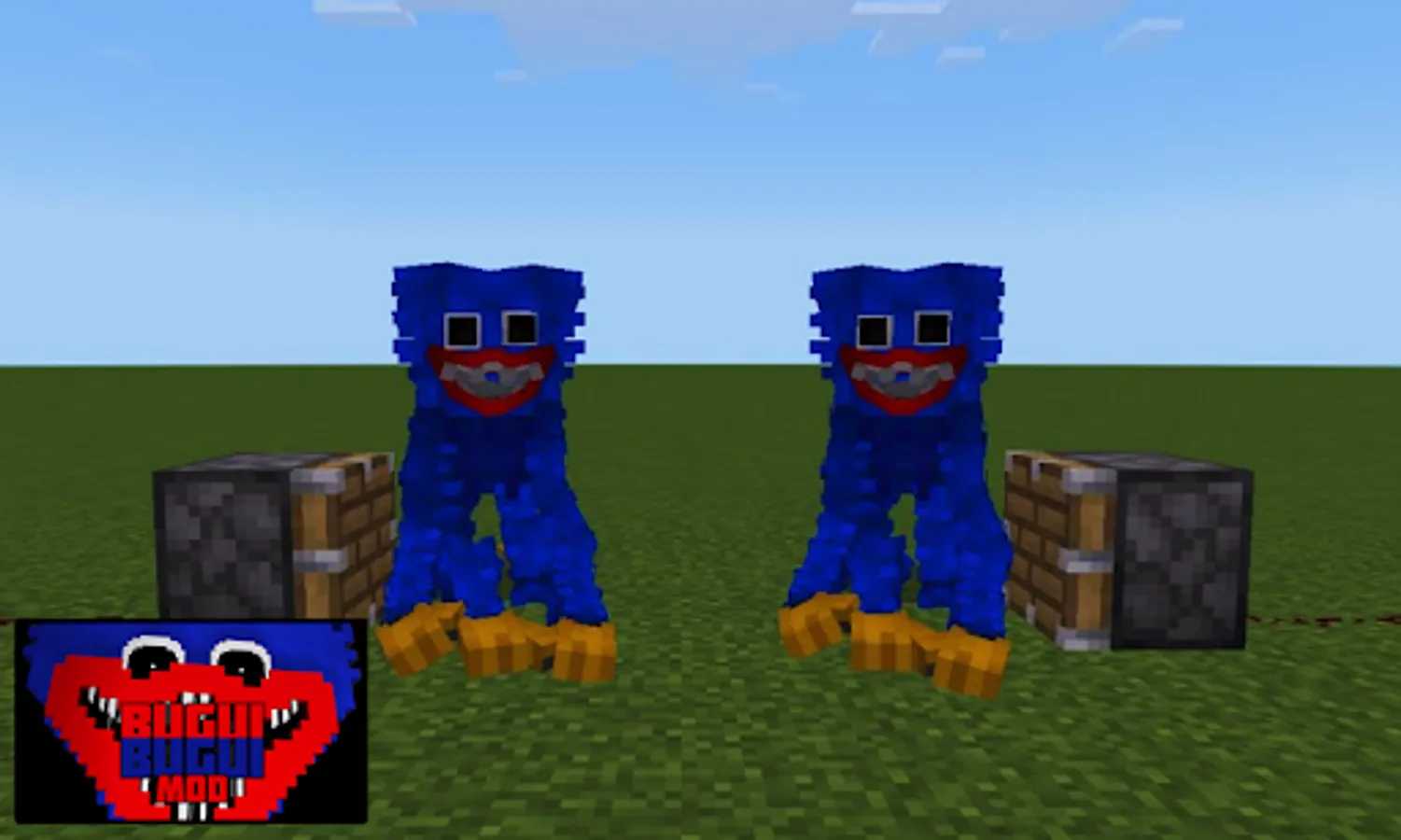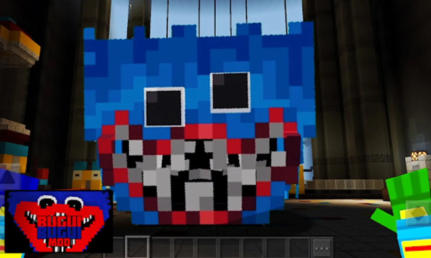 The popular horror game Bugui Bugui, in which the player must find various items, including cassettes and other objects, in order to advance the plot, served as the inspiration for this mod for Minecraft. Bugui is a tall, blue toy that appears in the game Minecraft. For MCPE, this is the Poppy Playtime skin. He is trying to kill you because he is malevolent and acts as though the experiment went wrong a very long time ago.