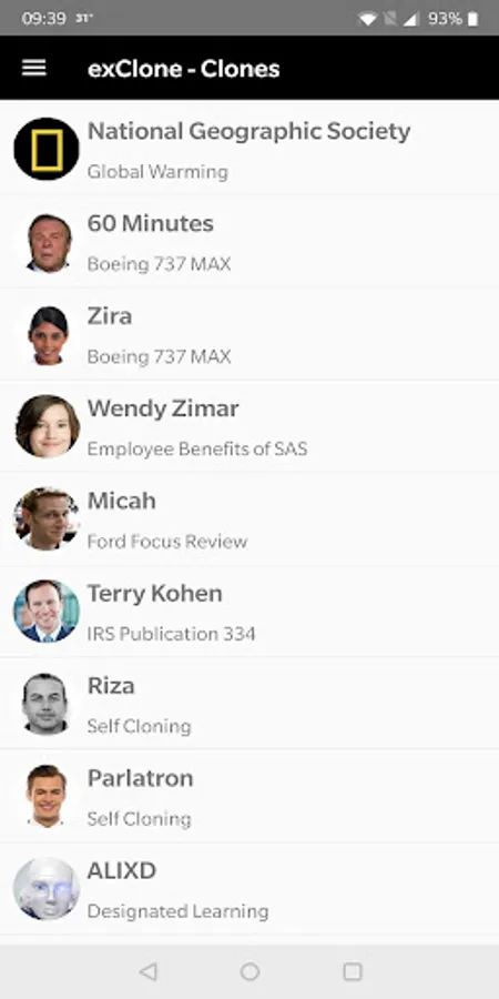 exClone app is a conversational AI chatbot which brings an ecosystem of virtual experts. The end users can chat with the virtual experts to learn about particular subjects in science, politics, engineering, journalism, health, and many other subjects, including entertainment and game chatbots.