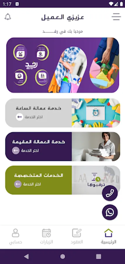 تطبيق رفد لخدمات العمالة المنزلية عن طريق إستقدام أحدث العمالة المدربة علي أعمال المنزل المختلفة من تنظيف وطبخ ورعاية مسنين وخلافه عن طريق خدمات بالساعة أو الخدمات المرنة