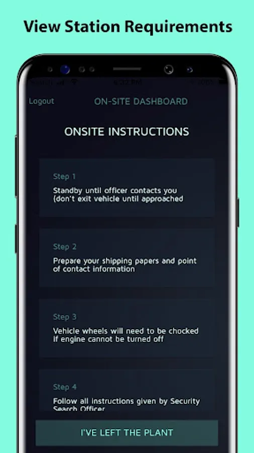 Exelon Nuclear Driver app allows vendor drivers to alert the station of their pending arrival. Delivery details will interface with Exelon Vehicle Search Application used by Exelon Nuclear Security officers providing a shorter wait time while at delivery location. Checklist style brief prepares drivers to make a delivery at an Exelon Nuclear Station
