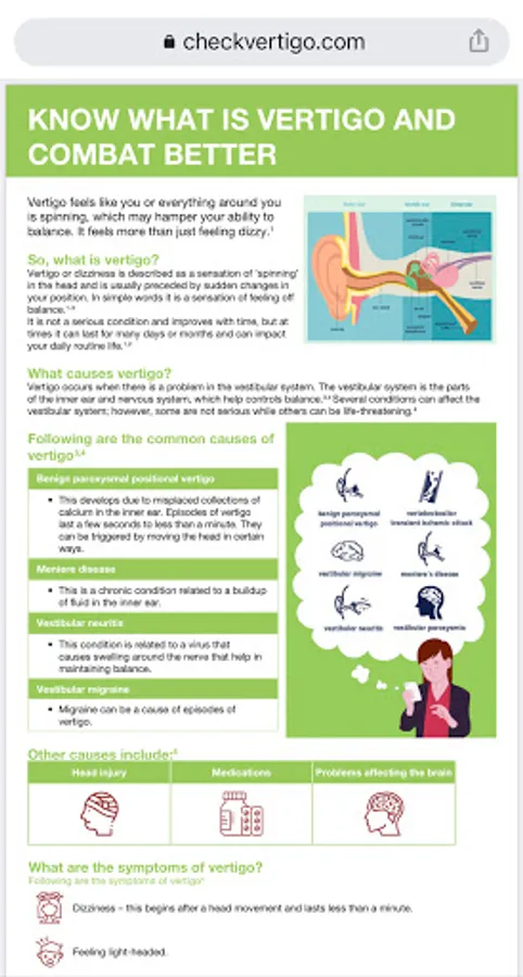 This app is a handy tool to assess if you suffer from vertigo. It also shows you the severity of vertigo so that you can talk to your doctor for management. It also includes material on vertigo management and diet.
