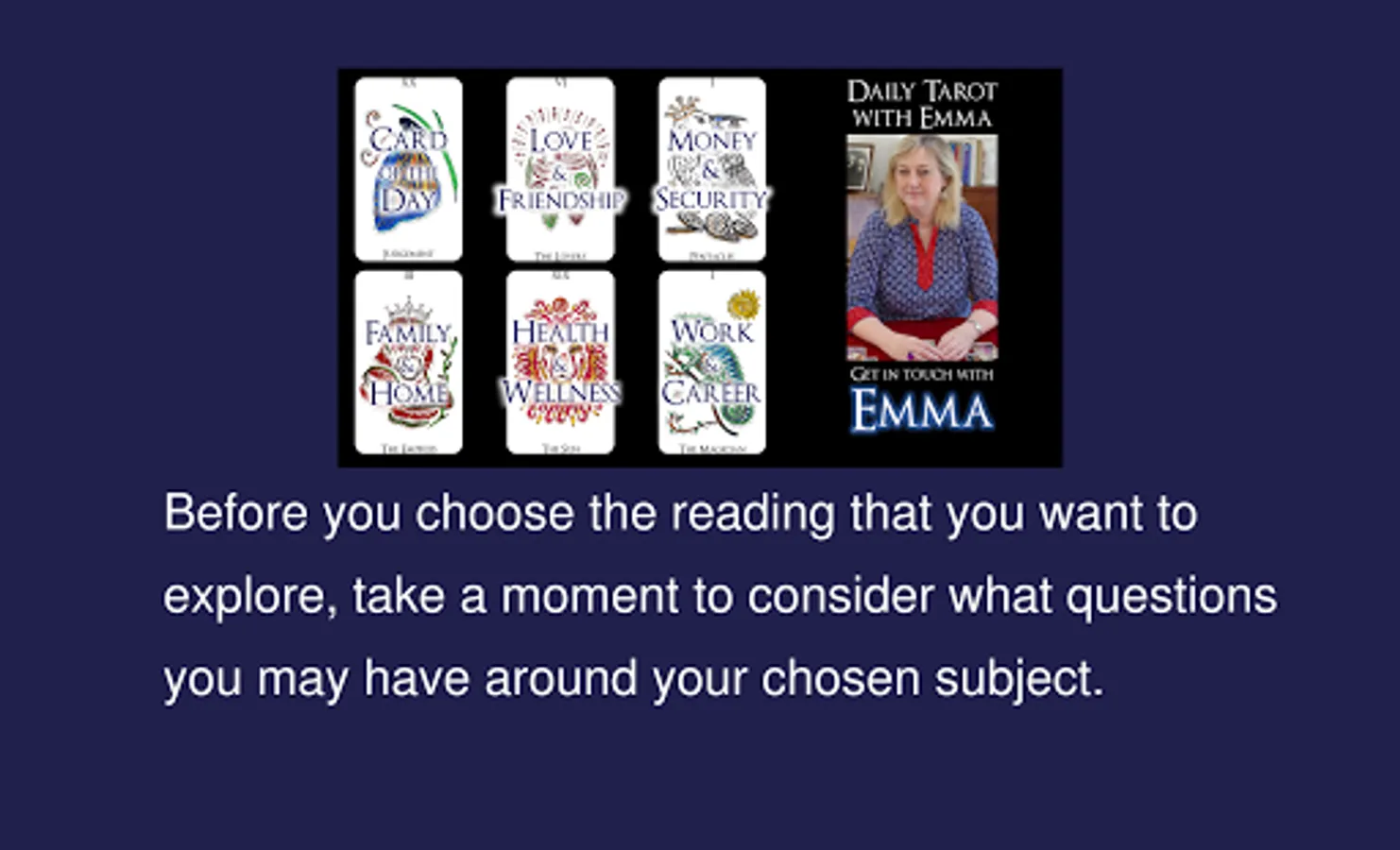 And, as a bonus feature, you can contact Emma direct from the app for her expert support, guidance and knowledge of the cards.