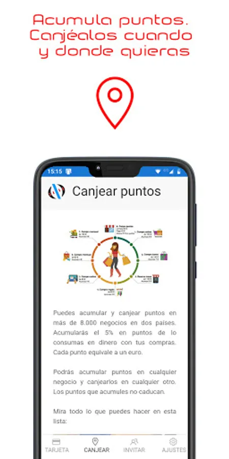 It is very simple. Download the App and register. When you go to buy at any of the participating establishments, swipe your points card and you will accumulate 5% of your purchase in exchangeable points. These points can be exchanged at any member establishment, converting your points into direct discounts without limits.