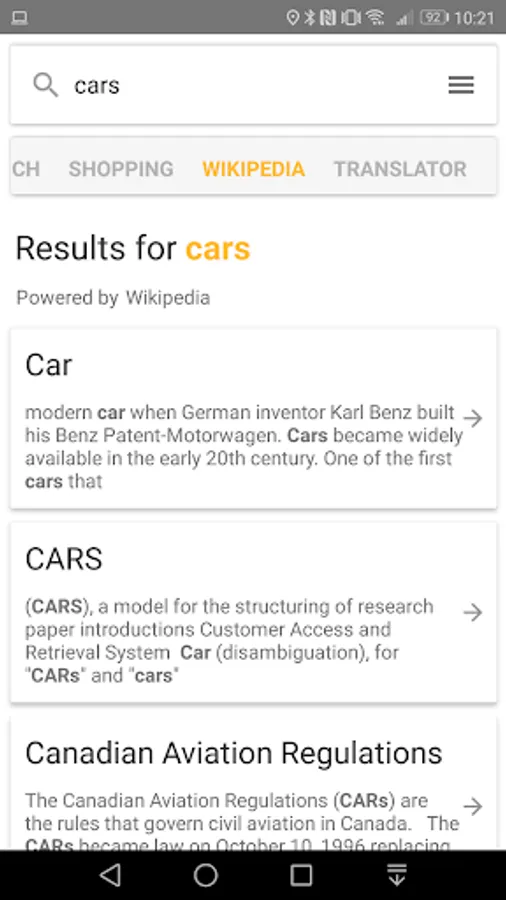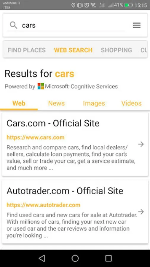 the web (Images, News and videos are also supported).