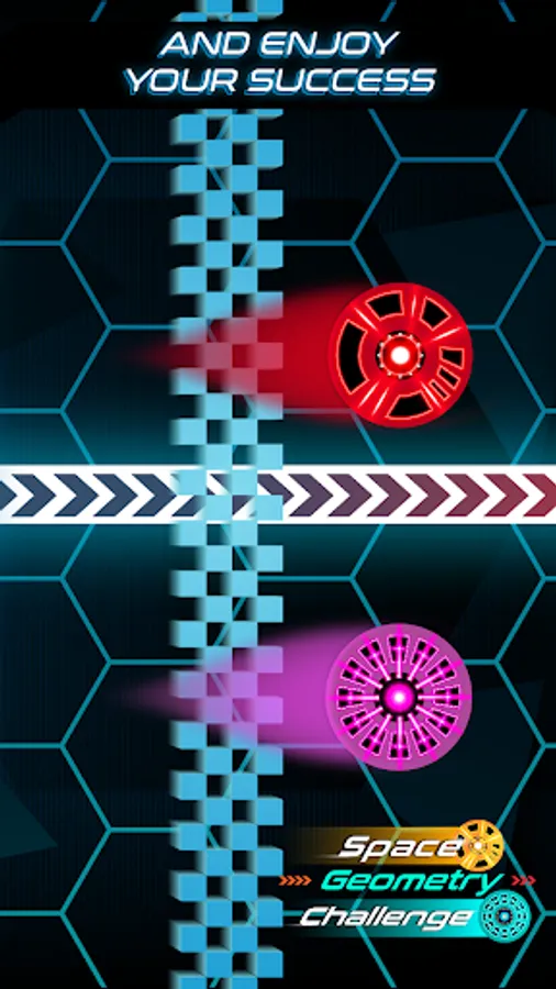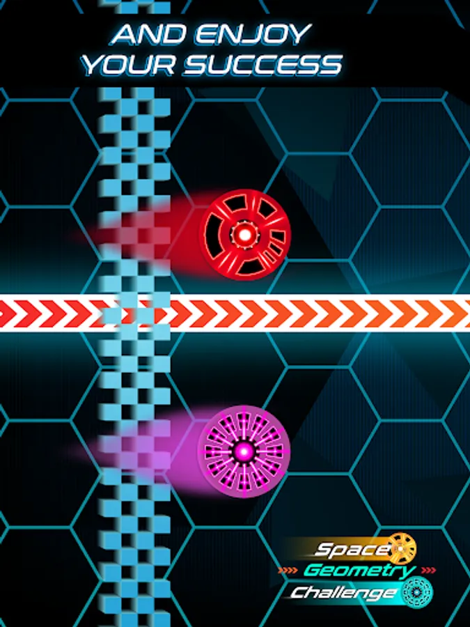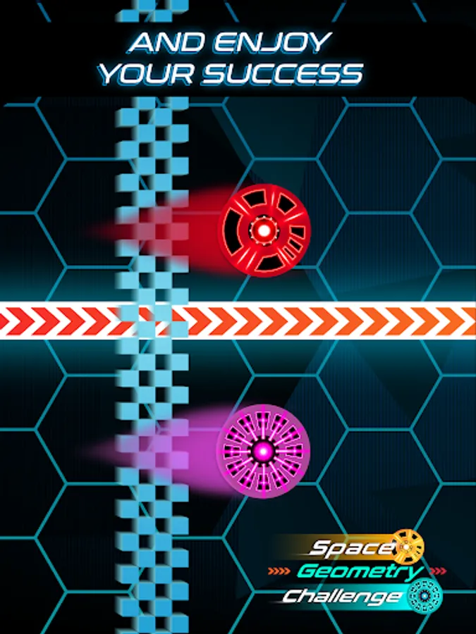 You may think this is just another Geometry rhythm based game, but in Space Geometry Challenge: Neon Galaxy Running, you need to be skillful with both hands! It’s all in your fingers! Get ready to reach the end of the Galaxy, jumping over the obstacles and avoiding hurdles, all that in our space neon platformer!