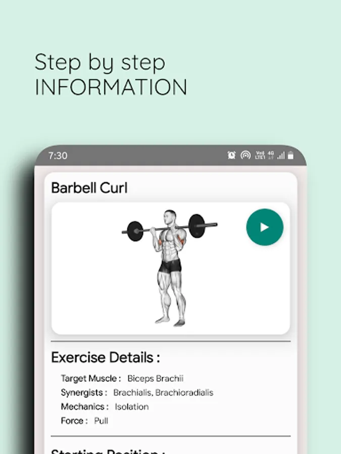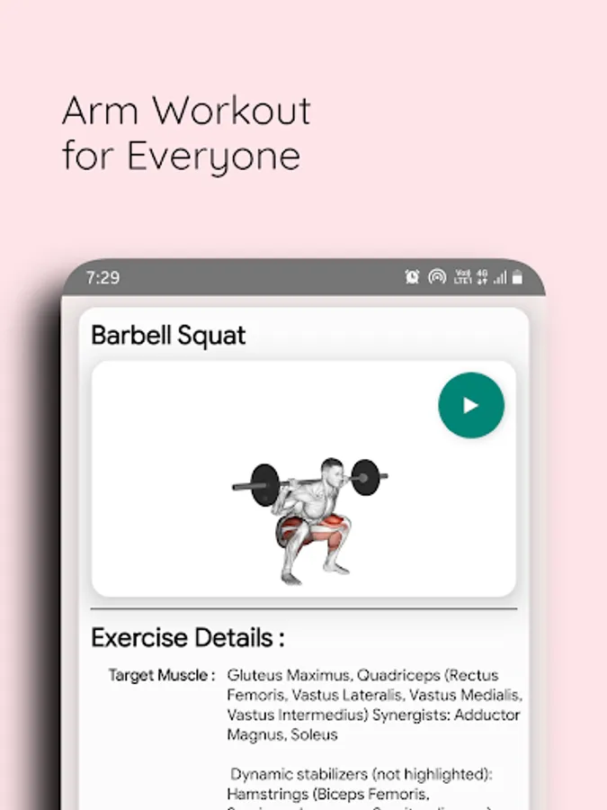 Each exercise comes with GIF image that demonstrates, and also coach tips that tell you how to breathe, how to avoid injuries and how to perform the workout right. It's just like your personal trainer in your pocket, so you can easily do your workouts at home or anywhere at any time.