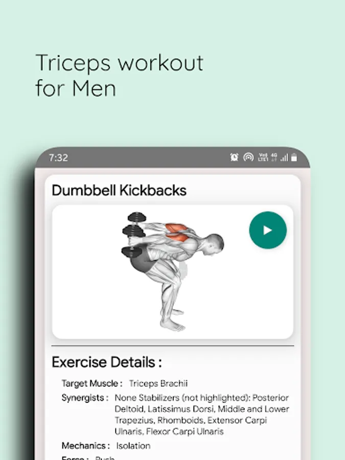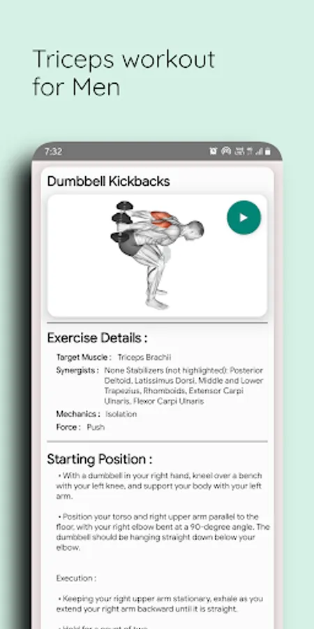 Triceps Workout, designed by professional fitness coaches, is created to help people around the world obtain stronger arms. It offers short and effective arm workouts for developing arm muscles.