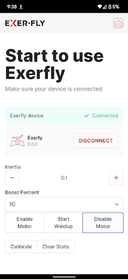 First connect to your Exerfly Equipment, then calibrate and start your reps.